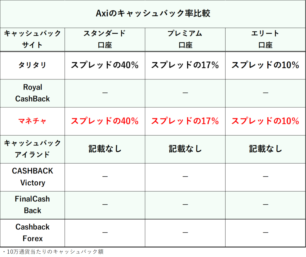 マネチャ(Money Charger)× Axiのキャッシュバック率