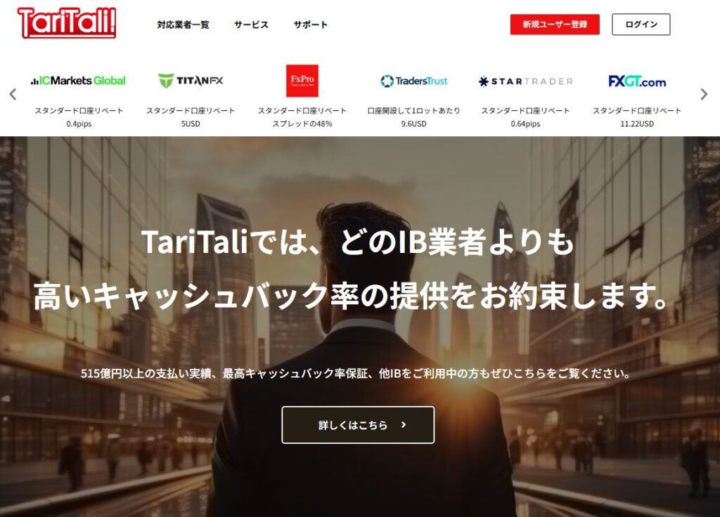 タリタリ(TariTali)に登録して海外FX業者と紐付けすることで、取引する度にキャッシュバックを受け取ることが出来ます。