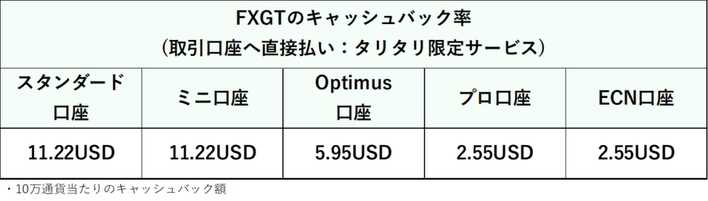 これはタリタリだけの限定サービスで、キャッシュバック報酬で得た資金をFXGTでの取引の資金として使いたい方にオススメです。