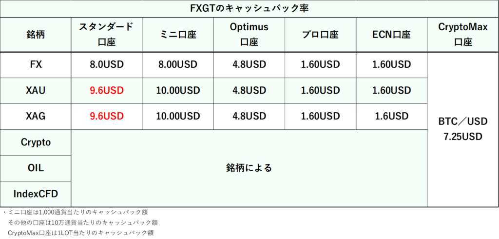 FXGTは海外FX業者の中で一番キャッシュバック率が高く、紐付けした口座でもボーナス対象となっています。