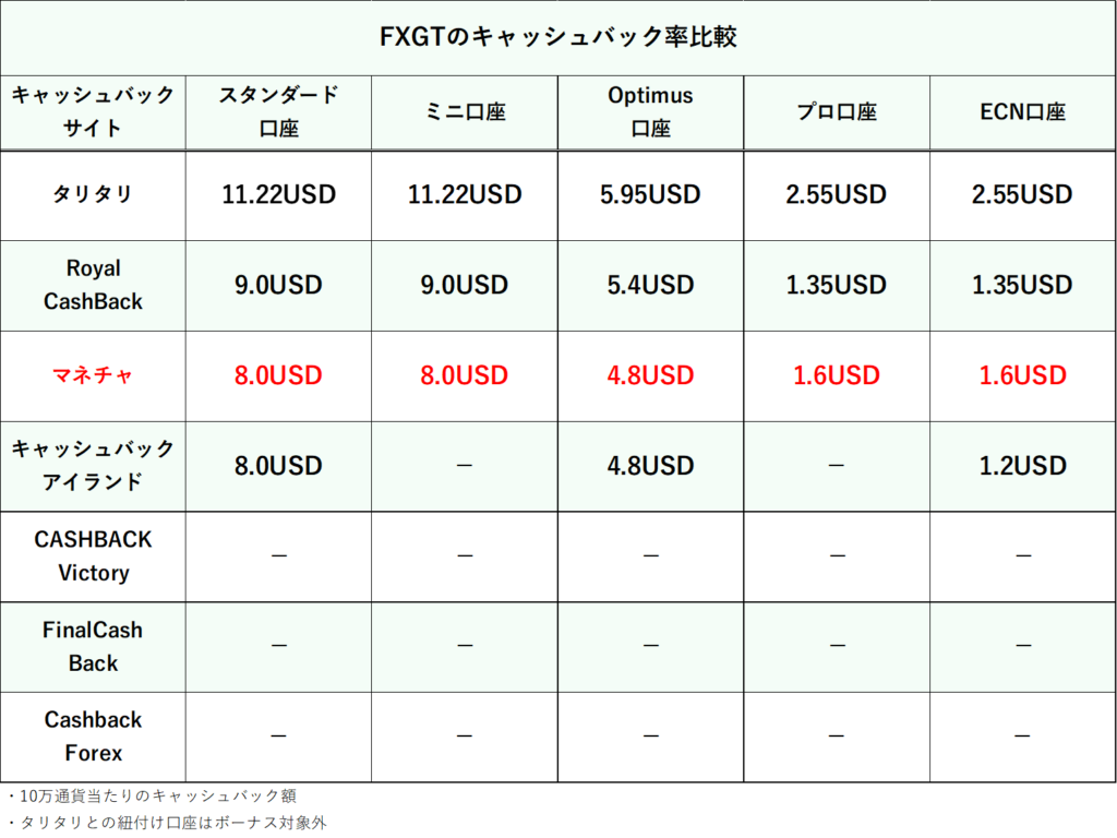 FXGTとマネチャを紐づけた口座はキャッシュバック率が高い点や、マネチャと紐付けした口座でもボーナス対象で使いやすいからオススメだよ!