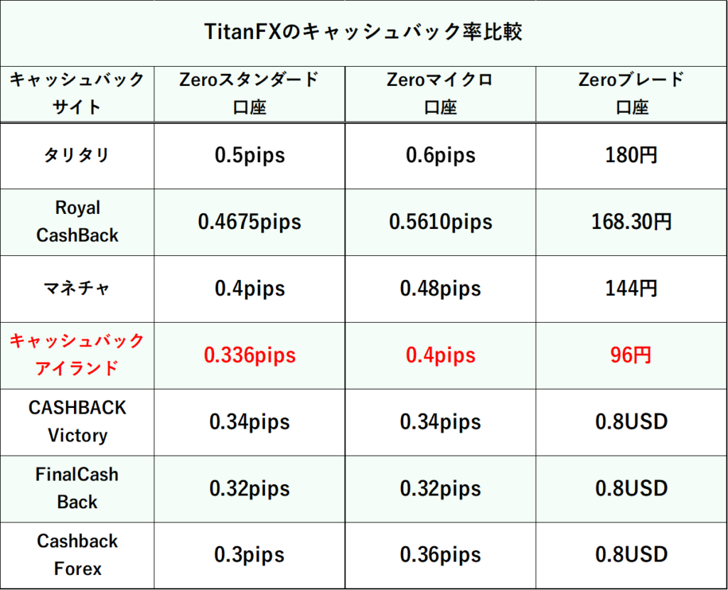 キャッシュバックアイランド(Cashback Island)と紐付けをしたTitanFXの口座はもともと狭いスプレッドと合わせてキャッシュバックを受け取ることが出来るので、取引時の実質コストをさらに減らすことが出来ます。